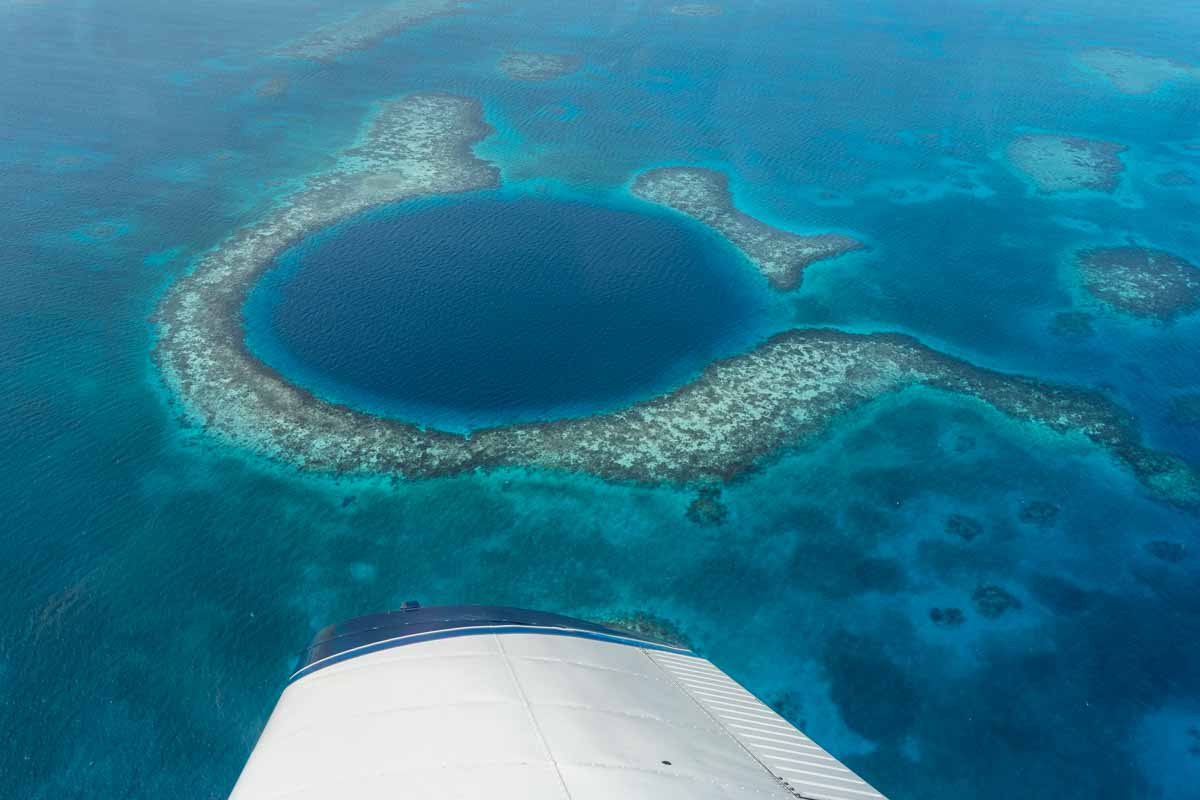 The Blue Hole is located off the coast of Belize and a lot of people visit it from the island of Caye Caulker. You can also scuba dive at the Blue Hole, but you don’t get the perspective like you do from flying over it. There are several charter flights you can take to fly you over the iconic spot and right back!