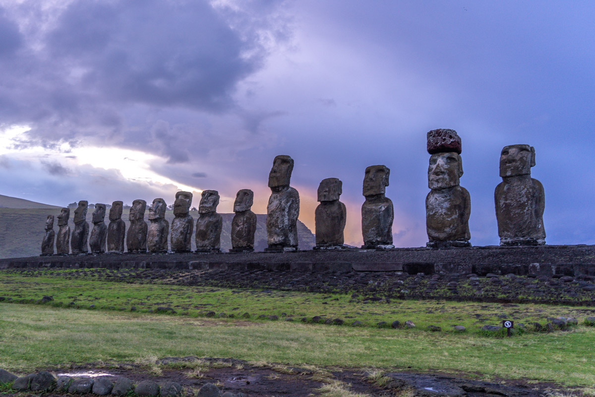Tha statues at Tahai are a popular place to go to for sunset as they are in walkable distance from Hanga Roa and right along the coast. There are several lined up that makes for a great shot and one that has eyes and a hat.