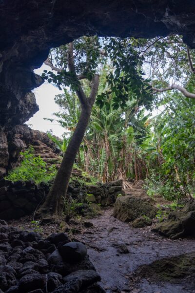 The cavern, Ana Te Pahu, is pretty strange to stumble across. It’s located out in the middle of a field and is a lava channel formed from volcanic eruptions. It looks like a pit in the floor.